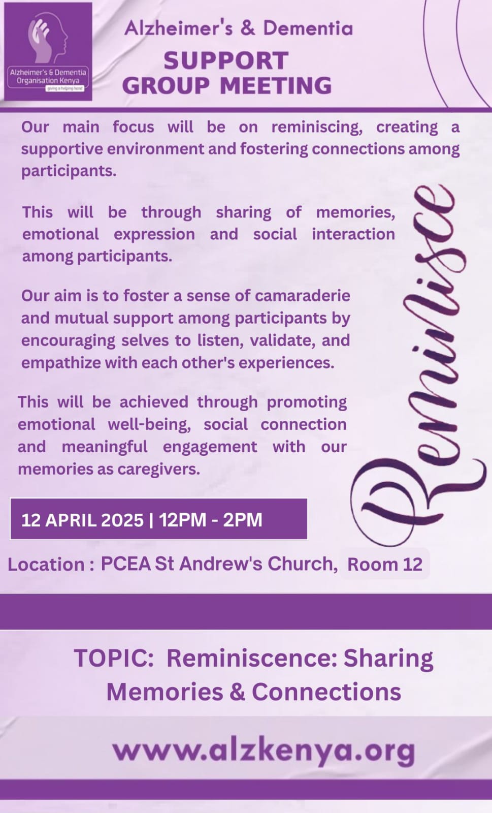 To offer holistic support for people living with dementia and their caregivers in Kenya.