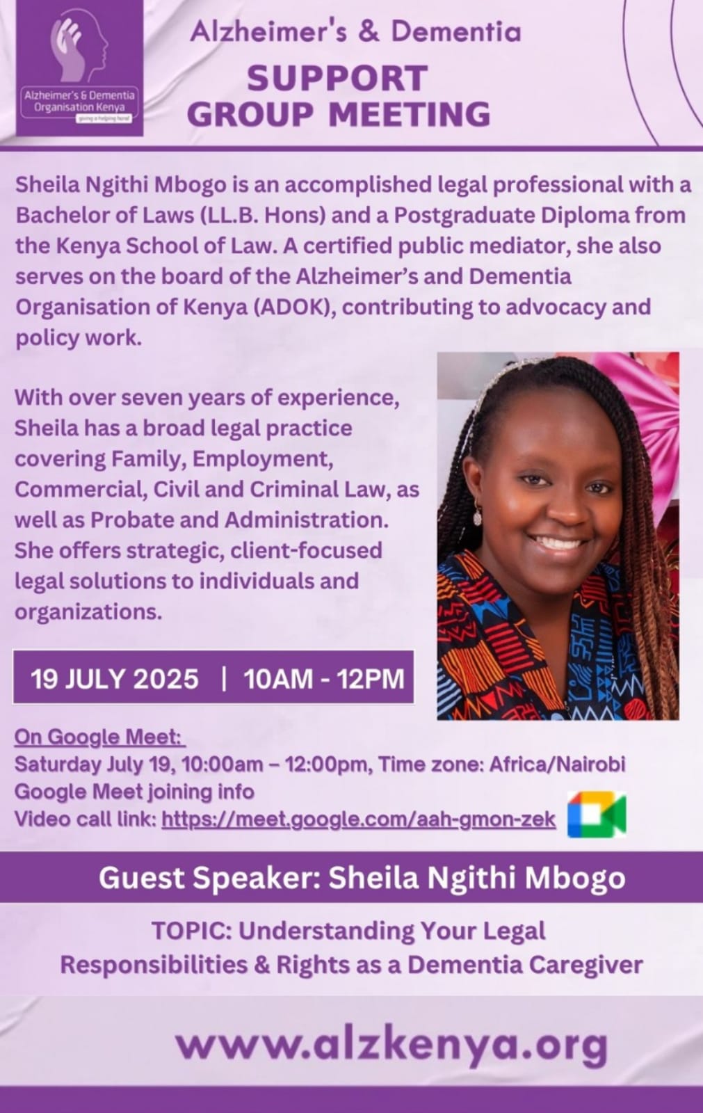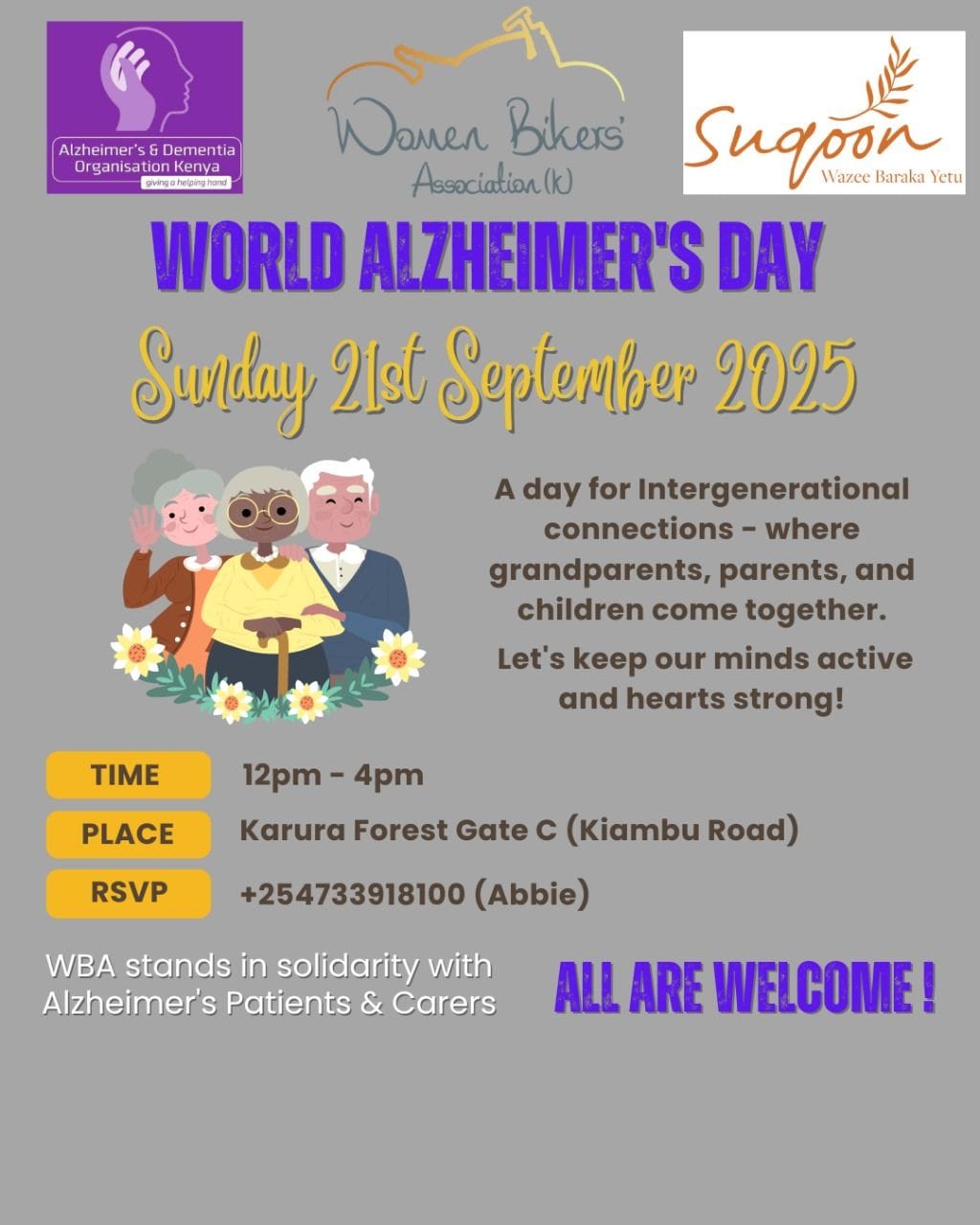 ADOK (Alzheimer's Dementia Organisation Kenya) works to raise awareness of Alzheimer’s, and provide support to those affected with Alzheimer’s and other forms of Dementia.